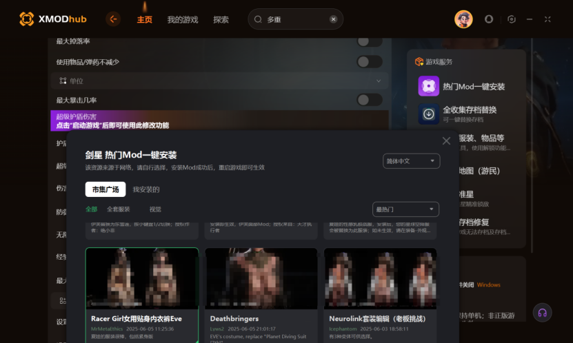 当然,XMOD 修改器的热门 MOD 一键安装功能也是一大特色。你可以安装一些增加游戏玩法的 MOD,比如新的副本、新的任务,让游戏不再单调;也可以安装一些改变角色外观的 MOD,让你的角色独一无二。