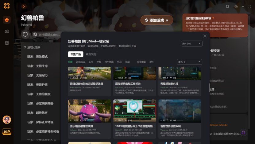 当然,XMOD 最实用的还是支持一键安装《幻兽帕鲁》的热门 MOD,比如改帕鲁词条。很多玩家都想让自己的帕鲁有更稀有的词条,但手动修改不仅麻烦还容易出问题。用 XMOD 的话,直接点一下就能安装对应的 MOD,词条修改又快又稳,能让帕鲁的能力快速提升,不管是干活还是战斗都更顺手。