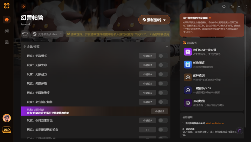 幻兽帕鲁修改器推荐 XMOD有超级伤害+一键装改帕鲁词条MOD
