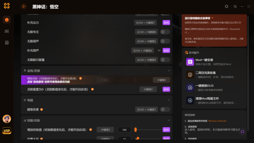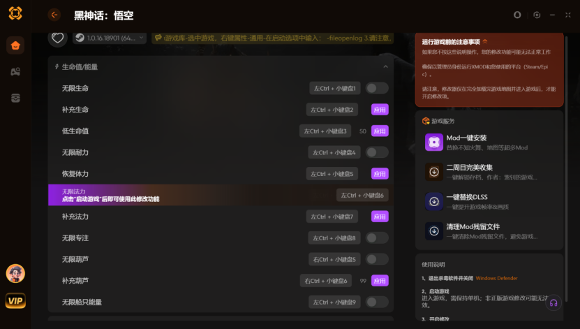 黑神话悟空用什么修改器?XMOD实现无限法力+增加灵韵
