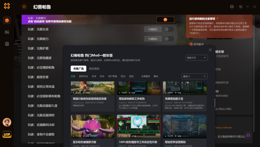另外,XMOD 支持一键安装热门 MOD,改帕鲁词条就是我常用的一个。稀有帕鲁虽然难得,但词条不一定符合自己的需求,比如有的稀有帕鲁战斗词条不行,干活又不擅长。用 XMOD 装了改词条的 MOD 后,能把稀有帕鲁的词条调整到理想状态,让它们既能当战斗主力,又能在基地里高效干活,实用性提升了不少。