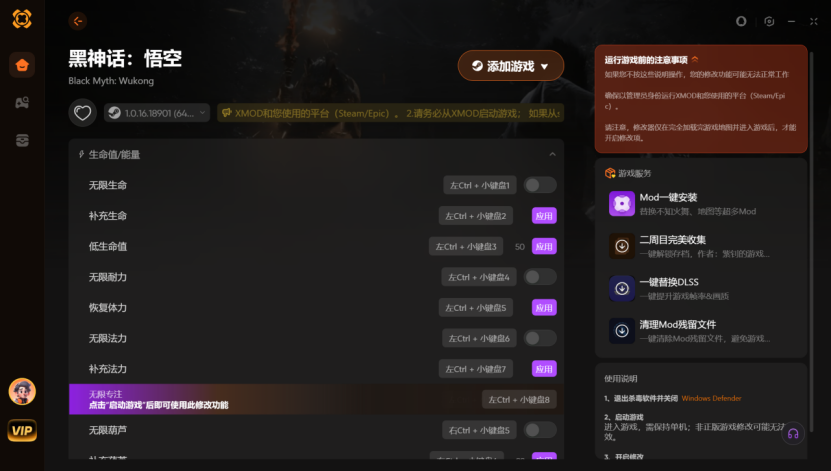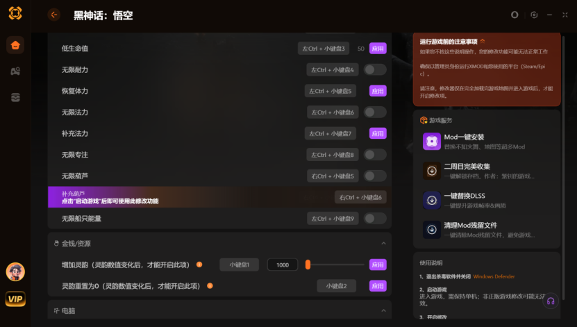 黑神话悟空修改器推荐!XMOD支持无限专注+无限葫芦