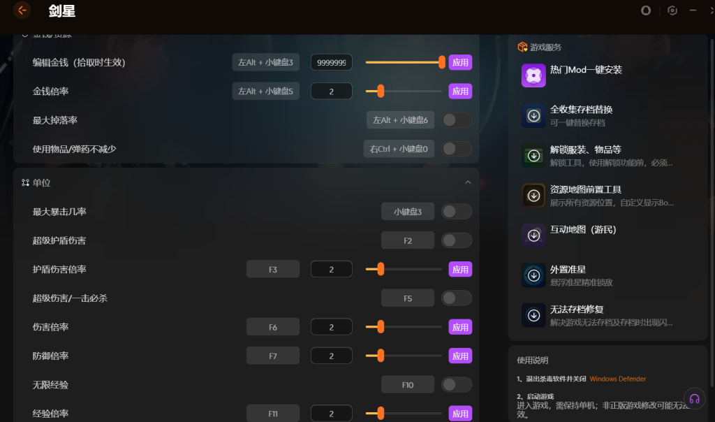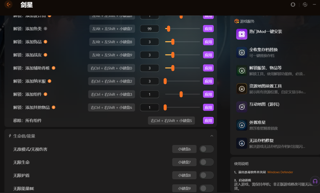 剑星除了战斗的玩法,还要搭配收集的任务,玩家使用XMOD修改 器可以解锁全物品全资源全图鉴。