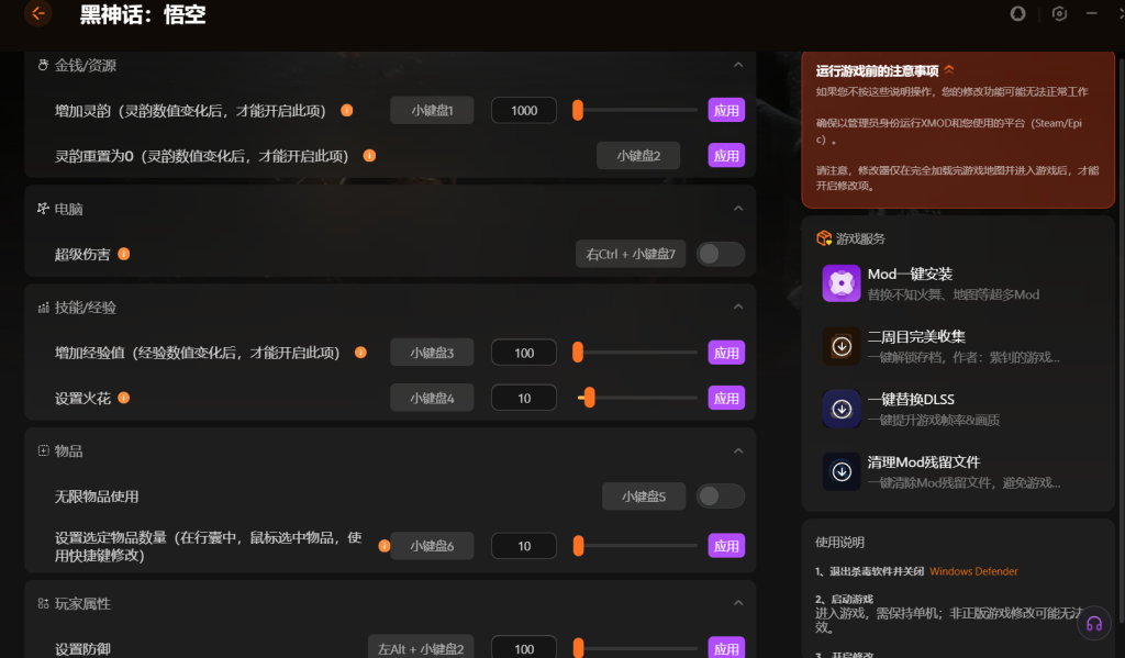 在黑神话悟空中有许多实力强大的boss,越往后面boss越难打,大家可以使用XMOD修改 器开启无限生命、无限耐力、无限法力、无限葫芦以及开启超级伤害,设置暴击几率、暴击伤害设定等等的操作。