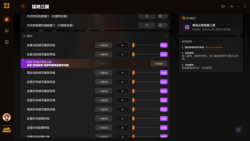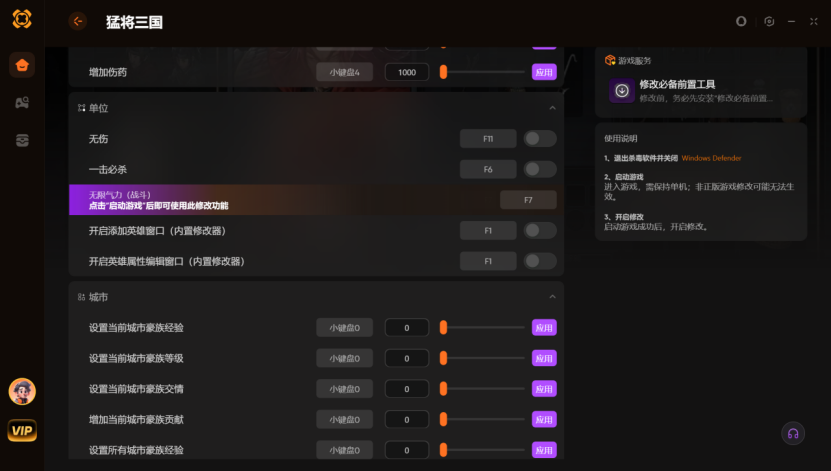 猛将三国修改器怎么挑?XMOD战斗无限气力+设置城市豪族经验