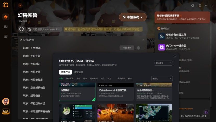 幻兽帕鲁修改器咋挑 XMOD支持一键装MOD+无限饱腹度