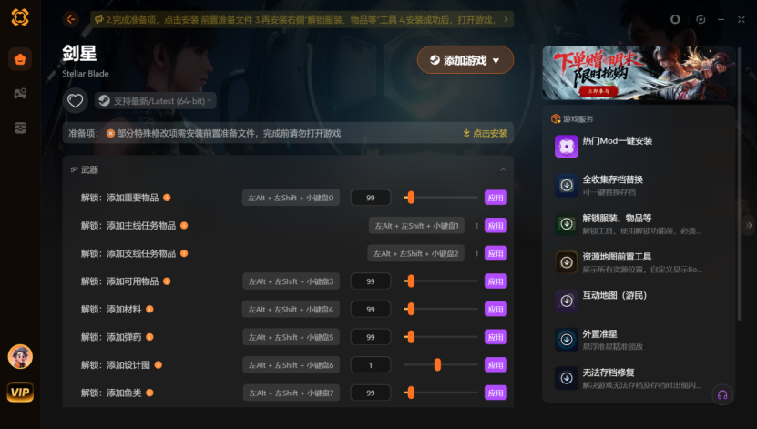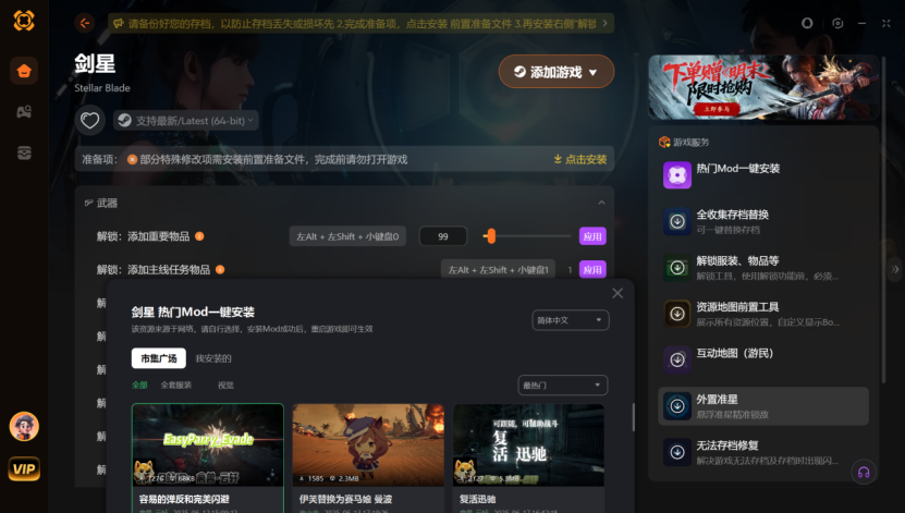 剑星修改器推荐 XMOD解锁全物品+一键安装热门剑星MOD