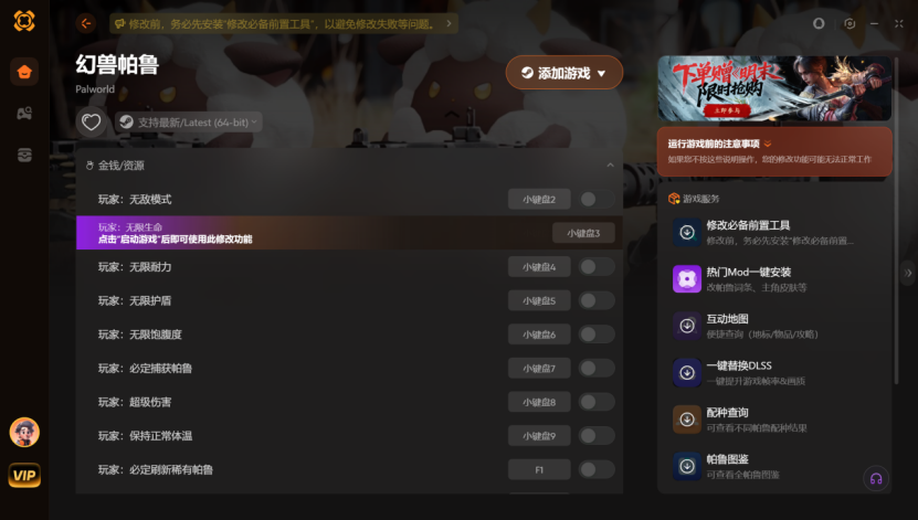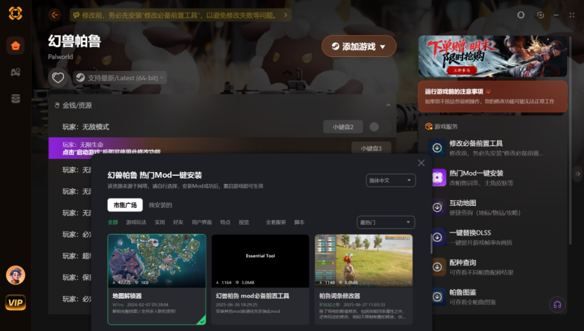 幻兽帕鲁修改器推荐 XMOD支持一键装MOD+无限生命