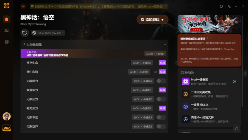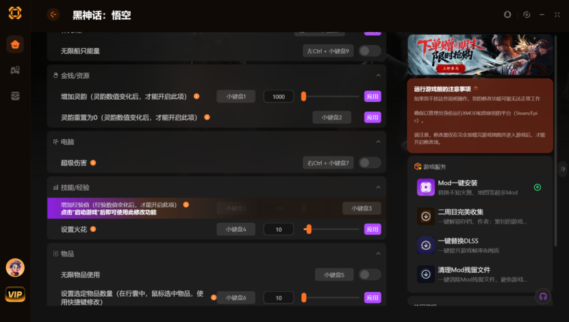 黑神话悟空修改器评测 XMOD支持无限生命+增加经验值