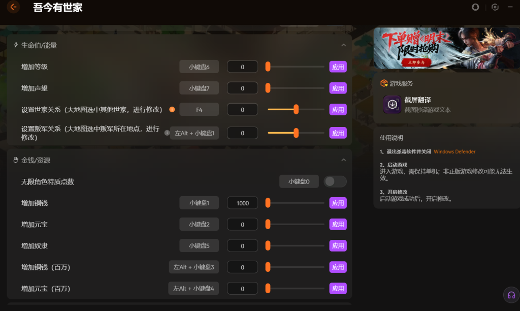 以上就是吾今有世家修改 器推荐 支持修改世家关系等三十五数值修改的全部内容,希望本次分享可以帮助到大家。