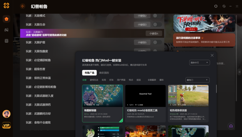 幻兽帕鲁修改器选哪个 XMOD支持一键装MOD+无限饱腹度