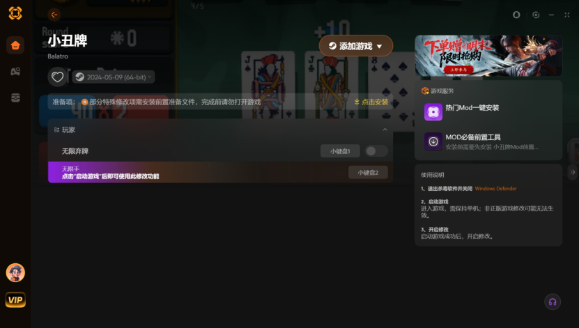 本期给大家分享的小丑牌修改器哪个好用 XMOD 带 mod 一键装还有无限弃牌的全部内容就到这里,我们下期再见。