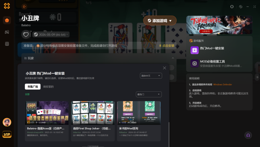 小丑牌修改器哪个好用 XMOD支持小丑牌mod一键装还有无限弃牌
