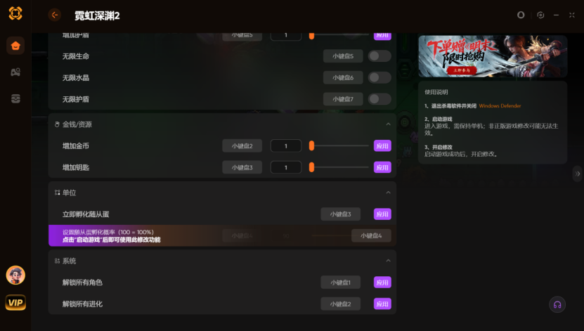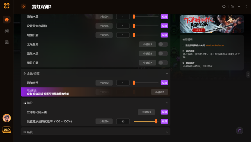 霓虹深渊2用什么修改器好 XMOD可增加钥匙+设置随从蛋孵化概率