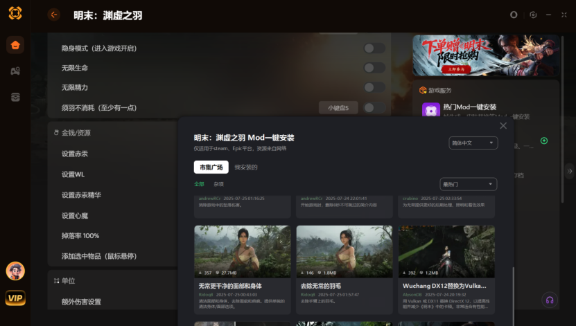 明末渊虚之羽MOD安装修改器推荐 明末mod一键安装召唤NPC等