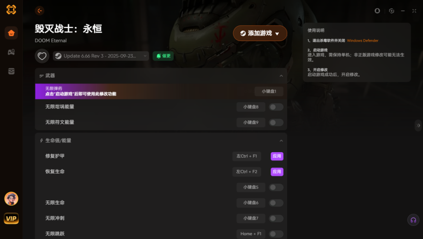 毁灭战士永恒修改器选哪个 XMOD支持无限弹药修复护甲