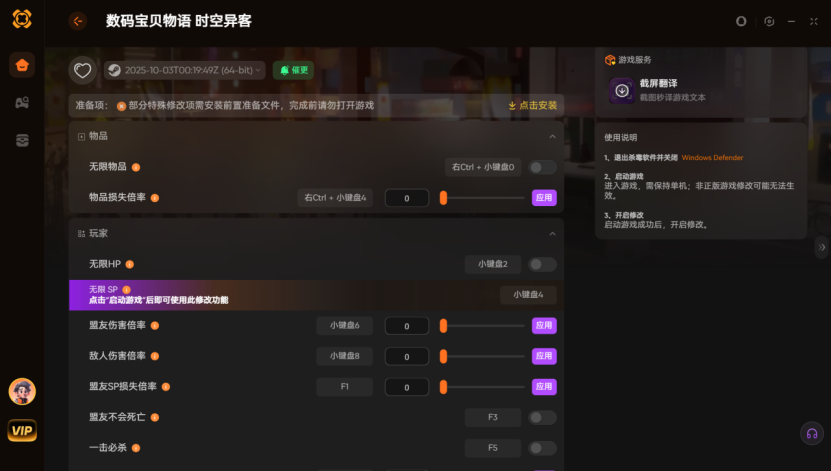 数码宝贝物语时空异客用啥修改器 XMOD支持无限SP与超级伤害