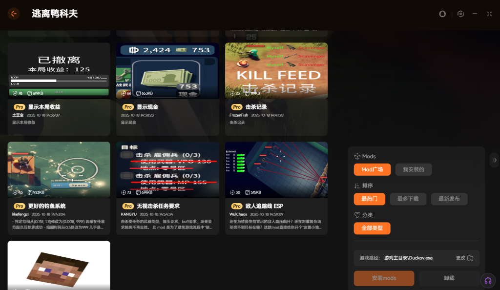 以上就是好用的逃离鸭科夫热门mod合集下载 爽玩存档一键安装的全部内容。