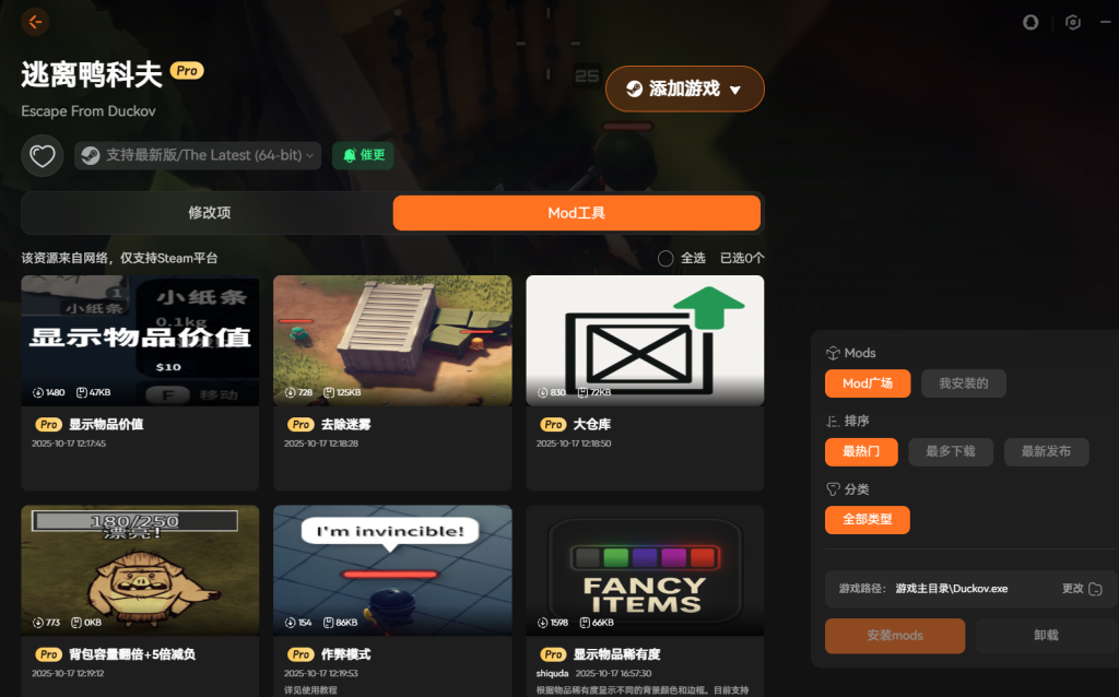 逃离鸭科夫修改 器推荐+热门mod一键下载