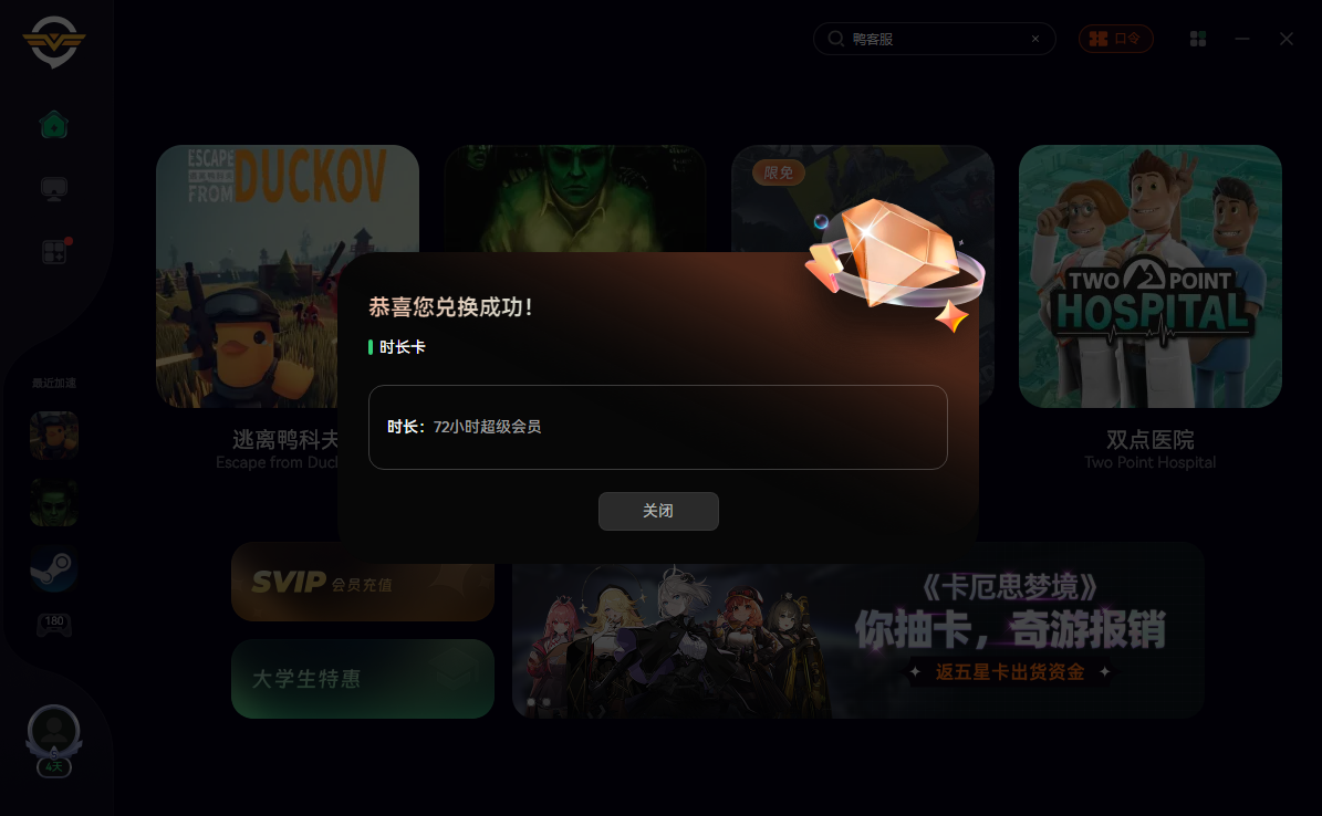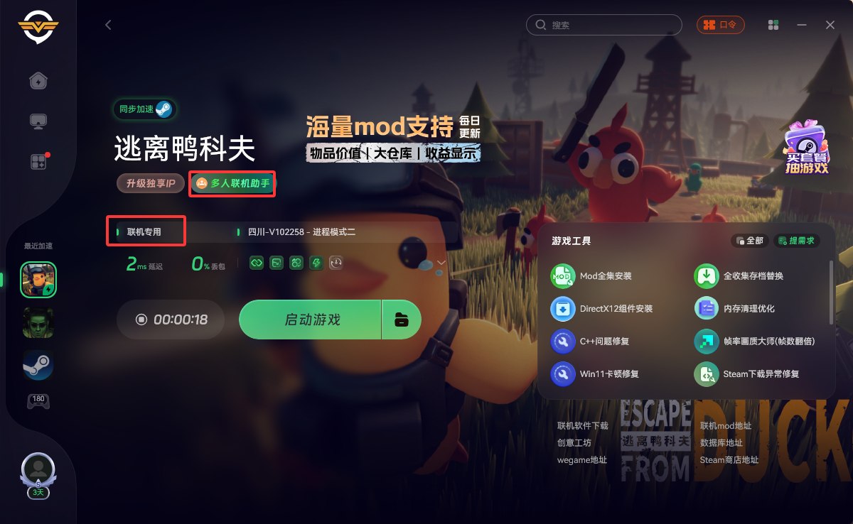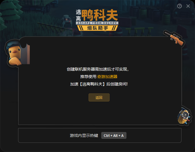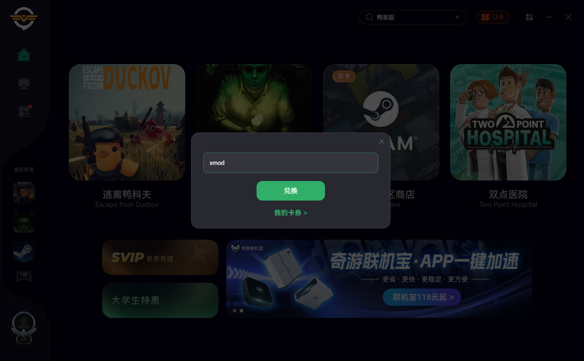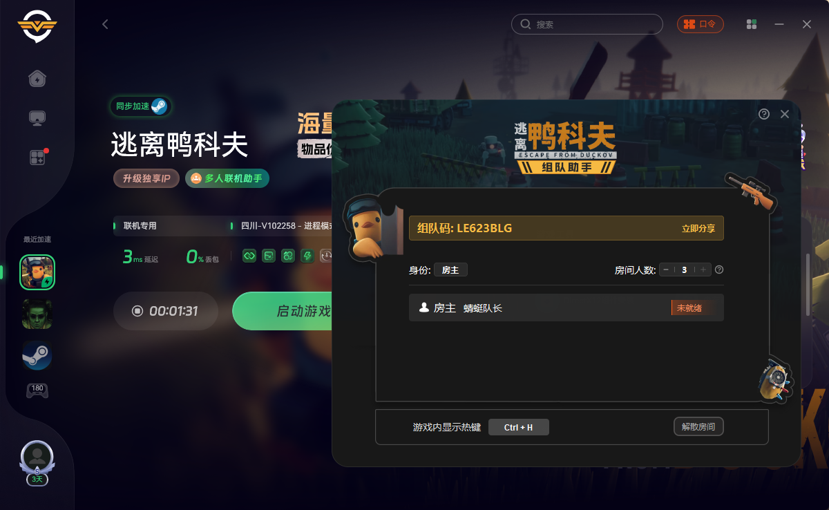 如果你需要创建房间,必须使用奇游,你可以使用兑换码“xmod”在奇游兑换72小时会员,加速逃离鸭科夫并选择“联机专用”区服,确保游戏已启动并进入地堡,打开奇游界面的【联机助手工具】–创建房间–点击立即分享,将分享内容粘贴发送给你的队友。