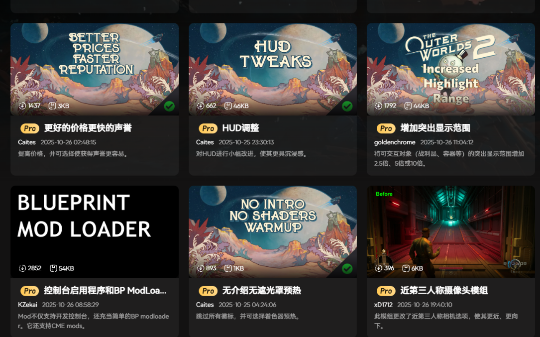 XMOD 的热门 mod 一键安装功能也值得一提。《天外世界 2》有不少能优化体验的 mod,但手动安装 mod 需要了解游戏文件结构,对新手不太友好。而 XMOD 里的热门 mod 都是现成的,点击安装后会自动适配游戏版本,不用自己手动改文件。