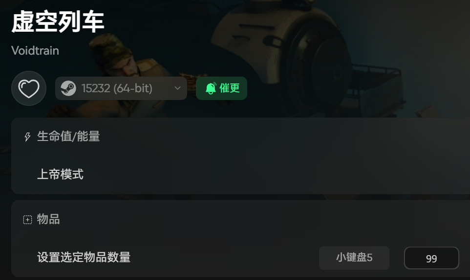 XMOD的上帝模式是我最常用的功能,在虚空探索时帮了大忙。之前穿越雷区总担心踩雷让列车设施爆炸,一夜回到解放前,开启上帝模式后,无论是雷区伤害还是敌人攻击都不会对我造成威胁,能安心排查每个角落的资源。遇到那只一口咬掉四分之一血的大鲨鱼时,也不用慌忙找掩体开枪,就算被它盯上,开启上帝模式后既能保护自己,也能从容输出攻击头部,不用担心列车被持续攻击损坏。