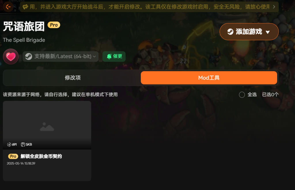 修改 器还内置一键安装热门MOD。可以解锁全皮肤和特殊角色等内容。让你的游戏内容更加丰富多样。所有操作都非常简单容易上手。