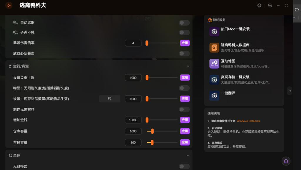 逃离鸭科夫修改 器下载 支持解锁全部角色+子弹不减