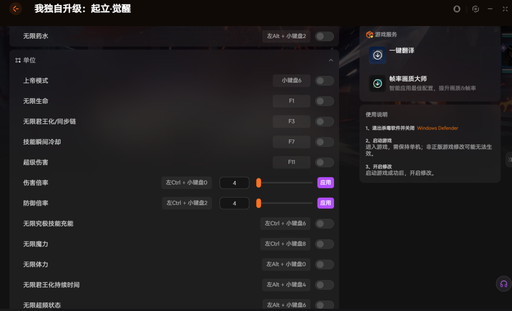 以上就我独自升级 起立 觉醒修改 器推荐 支持设置技能冷却+开启超级伤害的全部内容。
