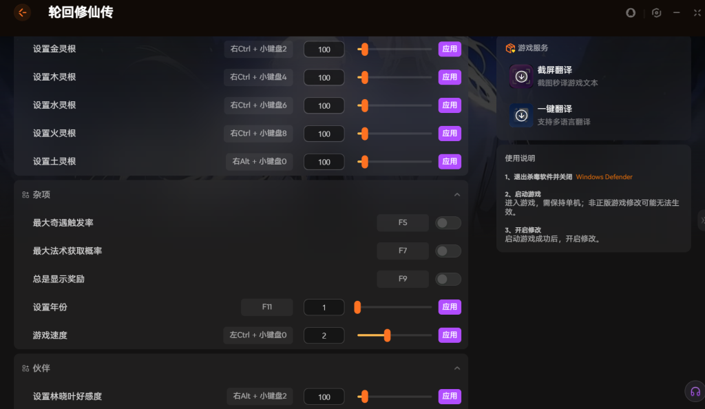 XMOD还支持调整其他属性。比如提高炼器经验,改变灵根数值。还能修改游戏速度,调整伙伴好感度。所有操作都在面板完成,简单方便。游戏过程完全由你掌控。