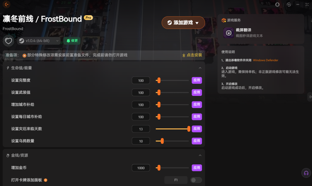 它还能修改金币和灾厄天数等。你可以获得大量金币,自由购买卡牌。甚至调整灾厄来临的时间,从容做好准备。这些功能让游戏节奏完全由你掌控。
