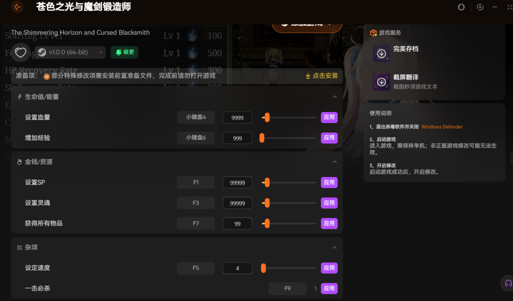 苍色之光与魔剑锻造师修改 器推荐 支持设置速度+血量