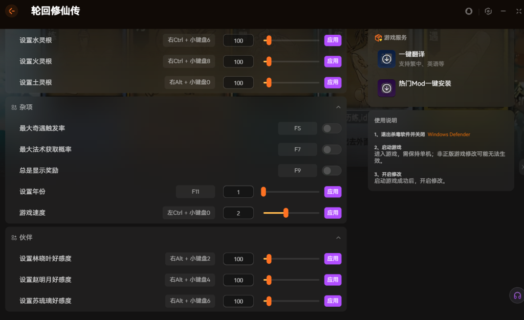 你还能调整触发奇遇和获取法术的概率。甚至可以控制游戏时间的流逝速度。这些功能让你能按自己的节奏体验修仙生活,减少不必要的等待。