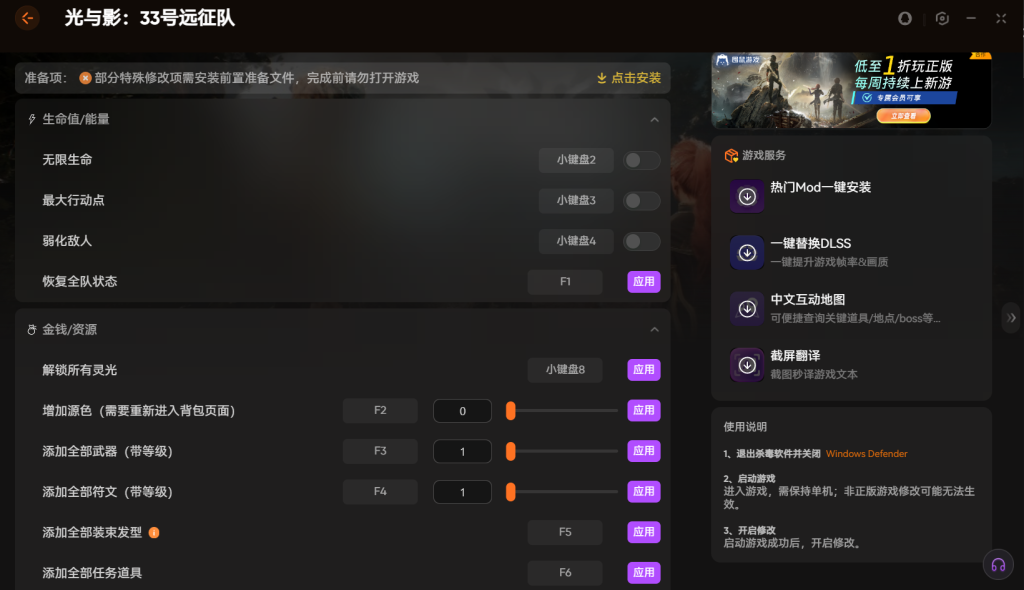 光与影33号远征队修改 器下载 支持开启无限生命+热门mod下载