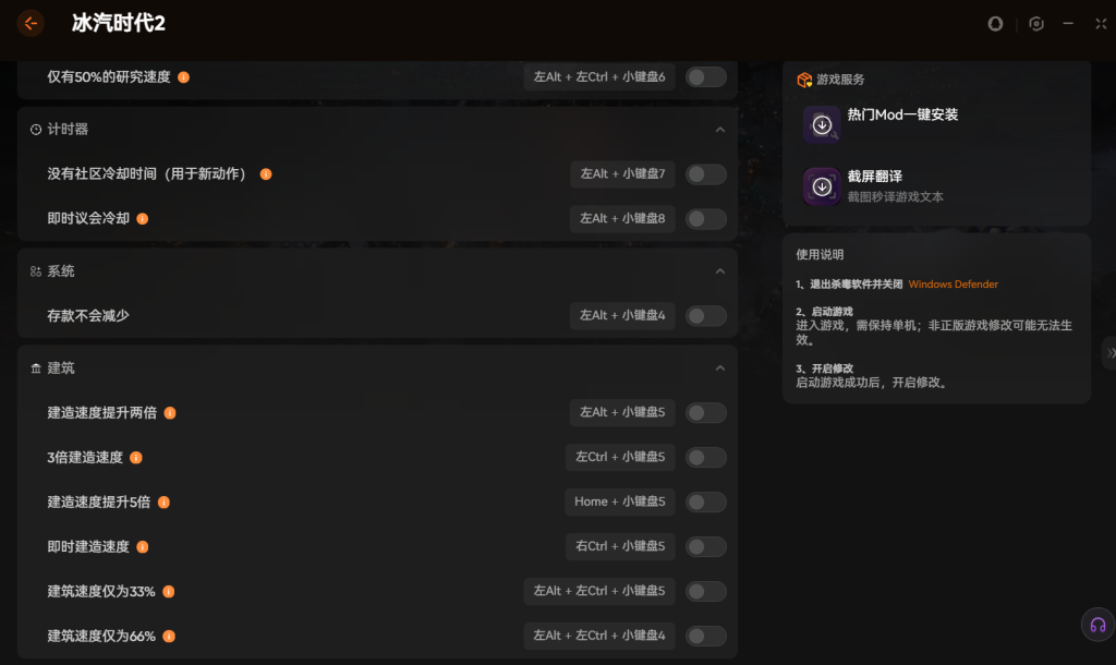 《冰汽时代2》里管理城市和发展科技需要投入大量时间。资源短缺和人力不足常常是主要难题。使用修改器可以快速补充这些关键要素,让你更专注于整体规划。