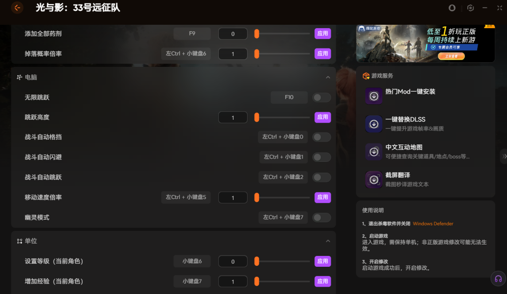 年度最佳游戏光与影33号远征队修改器下载 支持解锁全物品