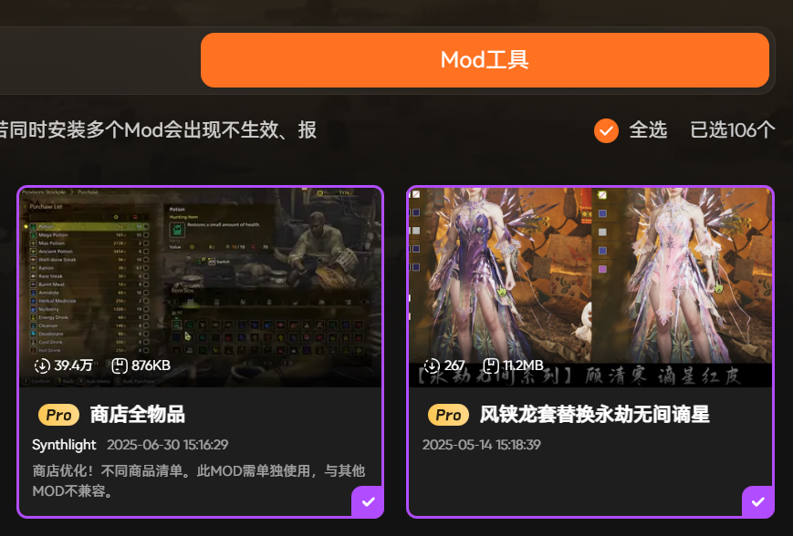 值得一提的是,XMOD还支持血条显示和热门mod一键安装功能。血条显示能让我们直观掌握怪物状态,尤其是在异常气象下出现的强大怪物,避免因状态误判陷入危险。热门mod一键安装功能则适配新版本的各类mod资源,从素材采集辅助到界面优化,都能快速安装使用,不用花费时间研究安装教程。