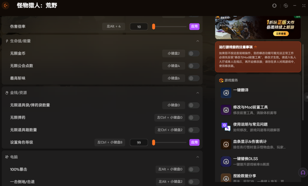 以上就是怪物猎人:荒野更新适配修改 器有哪些 支持开启无限金币设置伤害倍率的全部内容。