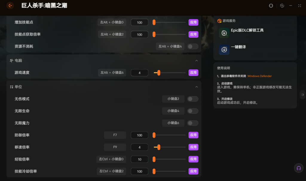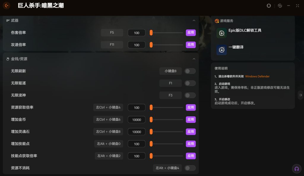 epic喜加一巨人杀手暗黑之潮修改 器推荐 支持设置伤害倍率+增加金币