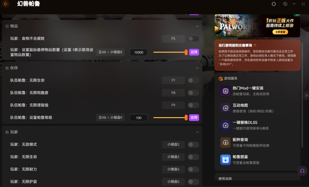 先启动游戏,再开启修改功能即可生效。希望这款工具能帮你更好地享受幻兽帕鲁的乐趣,快去试试吧。