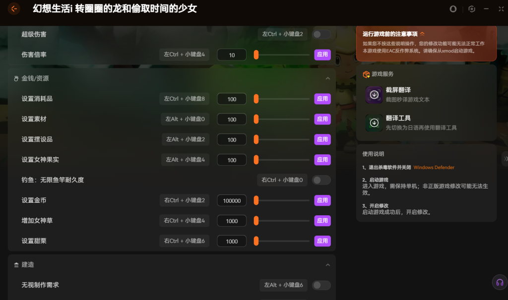 幻想生活i新dlc适配修改 器推荐 支持设置金币+无视制作时间