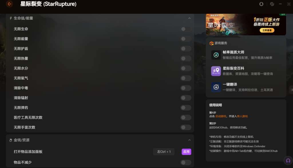 这里推荐一款针对星际裂变的修改 器。XMOD修改 器能直接解锁无限能量和无限护盾。开启后你不用再担心护盾耗尽,飞船能量也可以随便用。这能让你更安心地专注于探索和战斗。