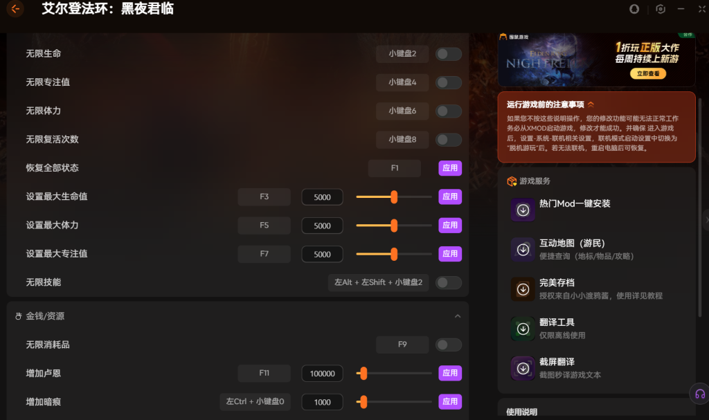 艾尔登法环:黑夜君临修改 器下载 支持无限体力+无限复活次数