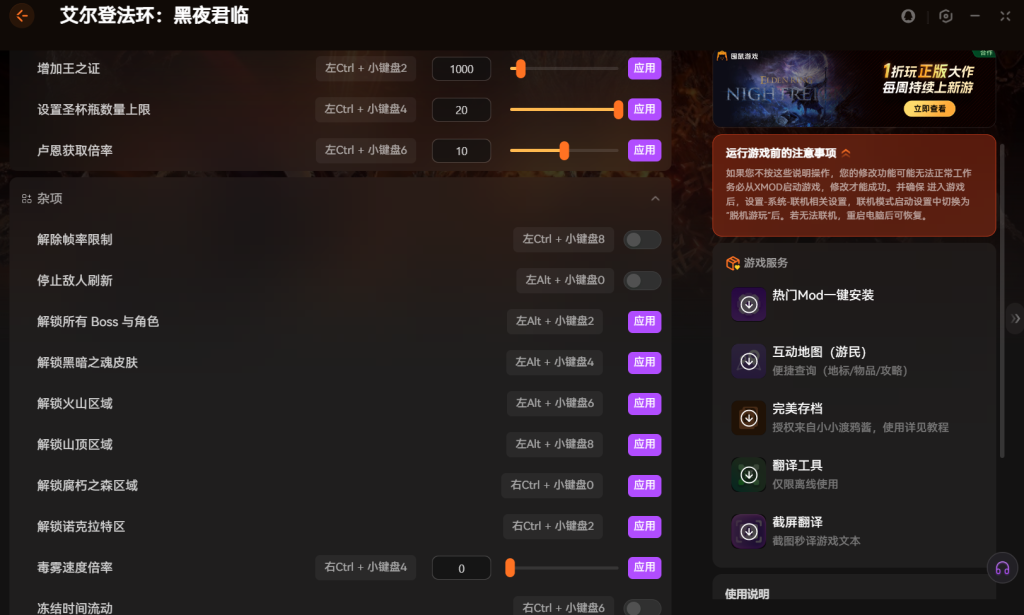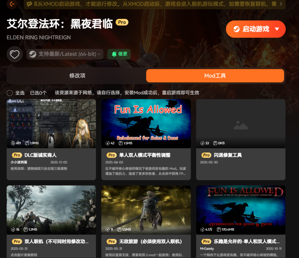 艾尔登法环黑夜君临是备受玩家喜爱的硬核动作游戏。如果你觉得难度太高,这款XMOD修改 器能帮你轻松体验。它专门针对最新64位版本开发,功能实用又可靠。