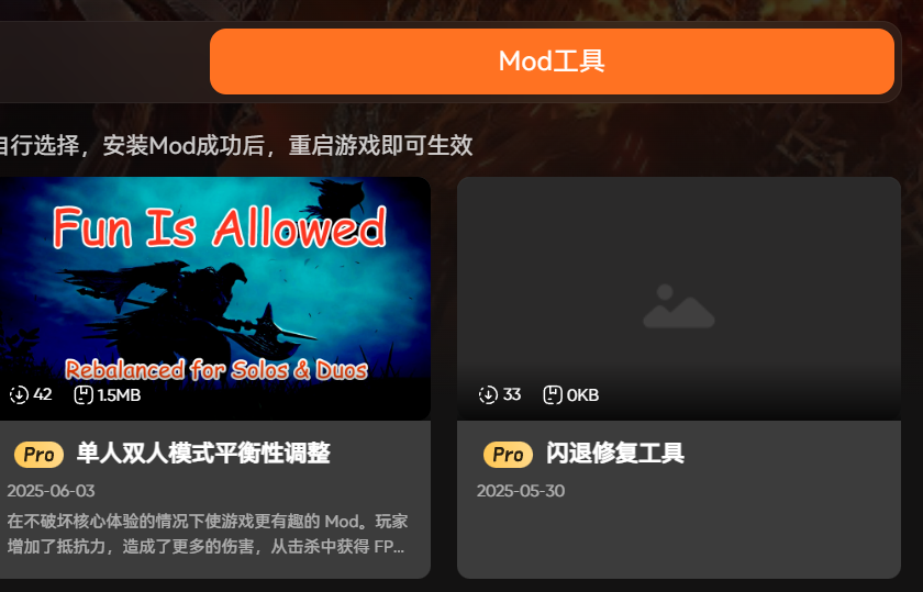 热门 mod 一键安装是 XMOD 的核心亮点,必须重点和大家推荐。对于喜欢体验不同内容的玩家来说,mod 能为游戏增添很多新鲜感,但找 mod、安装 mod 的过程往往很繁琐,还容易出现版本不兼容、安装失败等问题。XMOD 收录了大量适配《黑夜君临》的热门 mod,从功能性优化到剧情、皮肤拓展,种类齐全,而且安装过程特别简单,一键就能完成,不用手动操作,安装后直接进入游戏就能体验,大大节省了时间和精力。