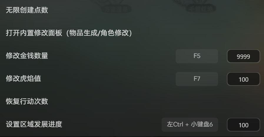 XMOD还支持设置区域发展进度功能,适合想快速解锁全地图势力交互、跳过初期弱势阶段的玩家,一键解锁目标区域控制权,直接开启与各大势力的博弈,省去逐地块攻占的繁琐。此外,修改器还涵盖无伤状态、一击必杀、侠客属性微调等功能,适配经营与战斗全场景。且会紧跟游戏版本更新,持续优化适配性,确保新剧情、新据点上线后仍稳定生效。