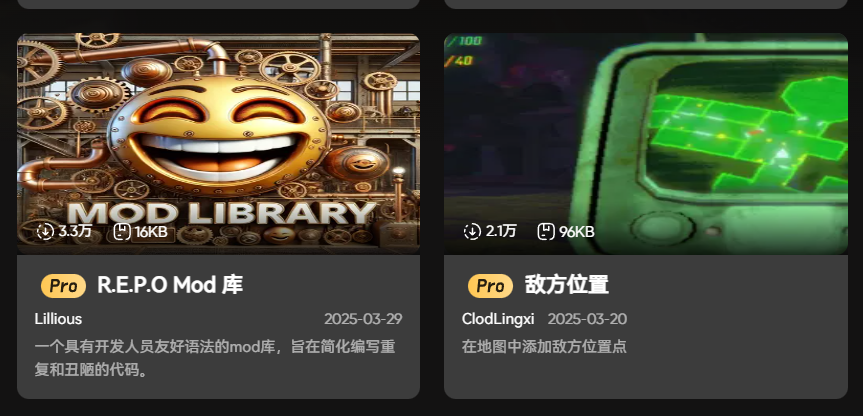 除了核心的一键汉化,XMOD还支持mod一键安装功能,这对喜欢丰富游戏玩法的玩家来说很实用。repo的mod能带来很多新鲜体验,比如有的mod能优化抓取工具的操作手感,让搬运物品更精准;有的mod能增加遗迹的探索区域,带来更多未知的挑战;还有的mod能提升队友之间的互动功能,让联机体验更有趣。但手动安装mod很麻烦,要找对适配的mod版本,还要手动定位游戏安装路径,对新手来说门槛很高。XMOD整合了大量优质的repo mod,玩家直接在修改器内就能选择安装,点击“一键安装”就能自动完成所有步骤,非常方便。