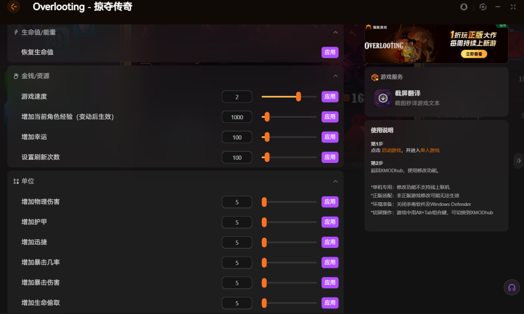 想玩《Overlooting – 掠夺传奇》又觉得升级太慢?刷不到好装备?现在可以轻松解决。XMOD修改 器为你带来单机专属的增强功能。