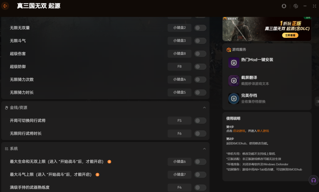 以上就是真三国无双起源修改 器下载 支持超级伤害+超级防御的全部内容。
