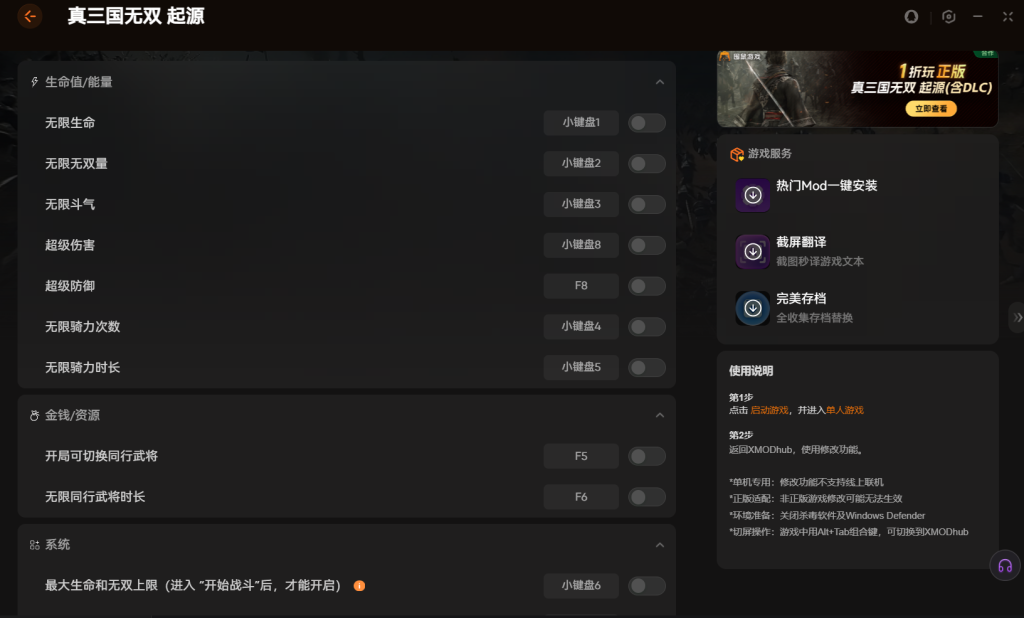 好用的真三国无双起源修改 器修改器来了 支持无限斗气+超级伤害